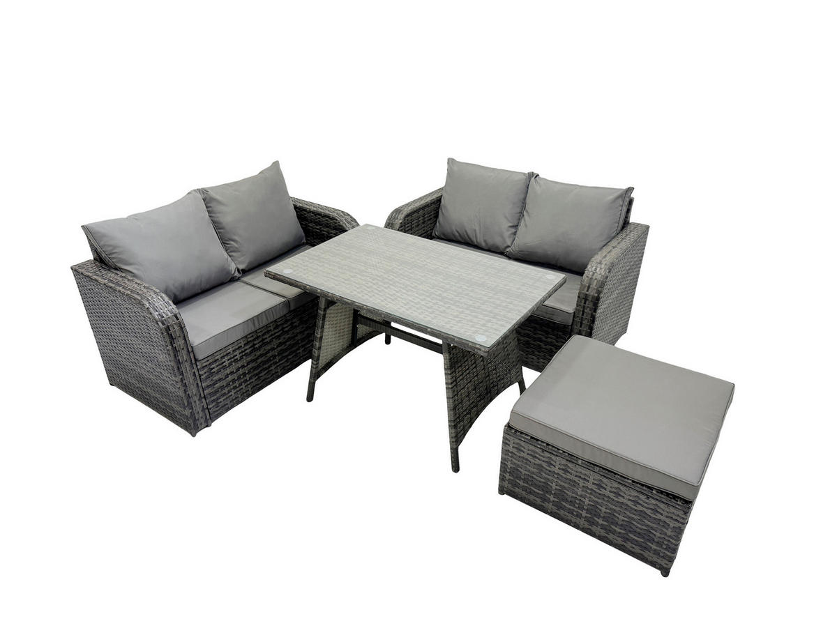 Fimous BALKONSET mit ESSTISCH SOFA Polyrattan Dunkelgrau 5-Sitzer