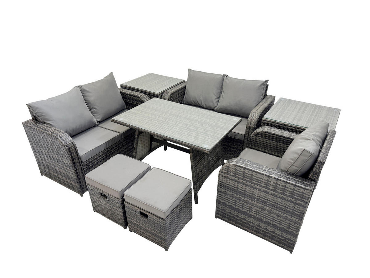 Fimous BALKONSET mit ESSTISCH SOFA Polyrattan Dunkelgrau 7-Sitzer