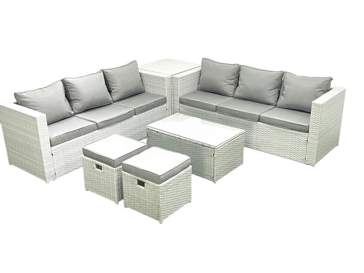 Fimous GARTENGARNITUR mit 3-SITZER SOFA,COUCHTISCH Polyrattan Hellgrau-Mix 8-Sitzer