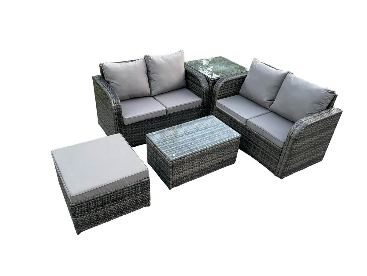 Fimous GARTENLOUNGE-SET Polyrattan Dunkelgrau 5-Sitzer