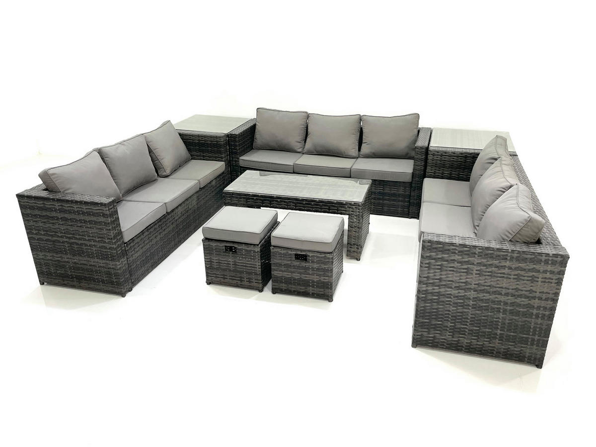 Fimous GARTENMÖBEL COUCHTISCH SET mit Sofa Polyrattan Outdoor 11-Sitzer
