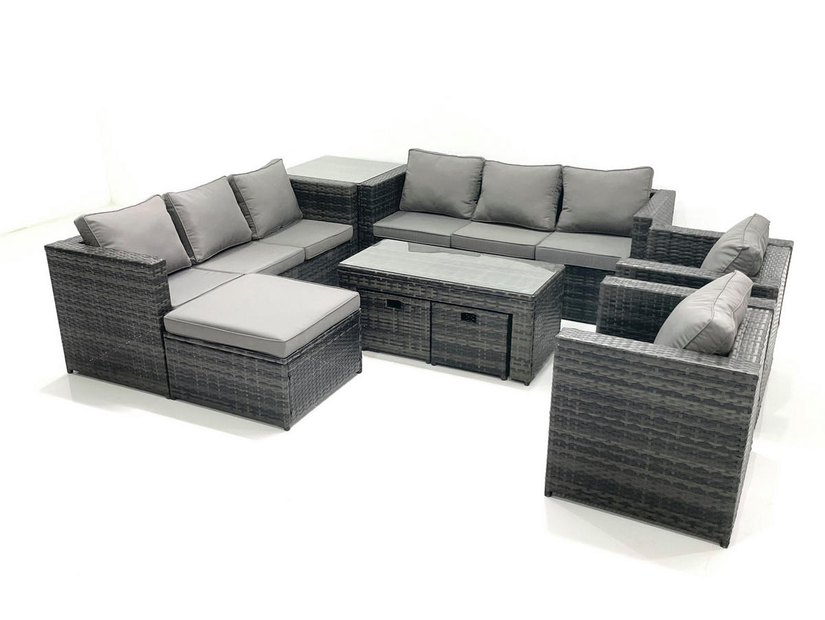 Fimous GARTENMÖBEL COUCHTISCH SET mit Sofa Polyrattan Outdoor 11-Sitzer