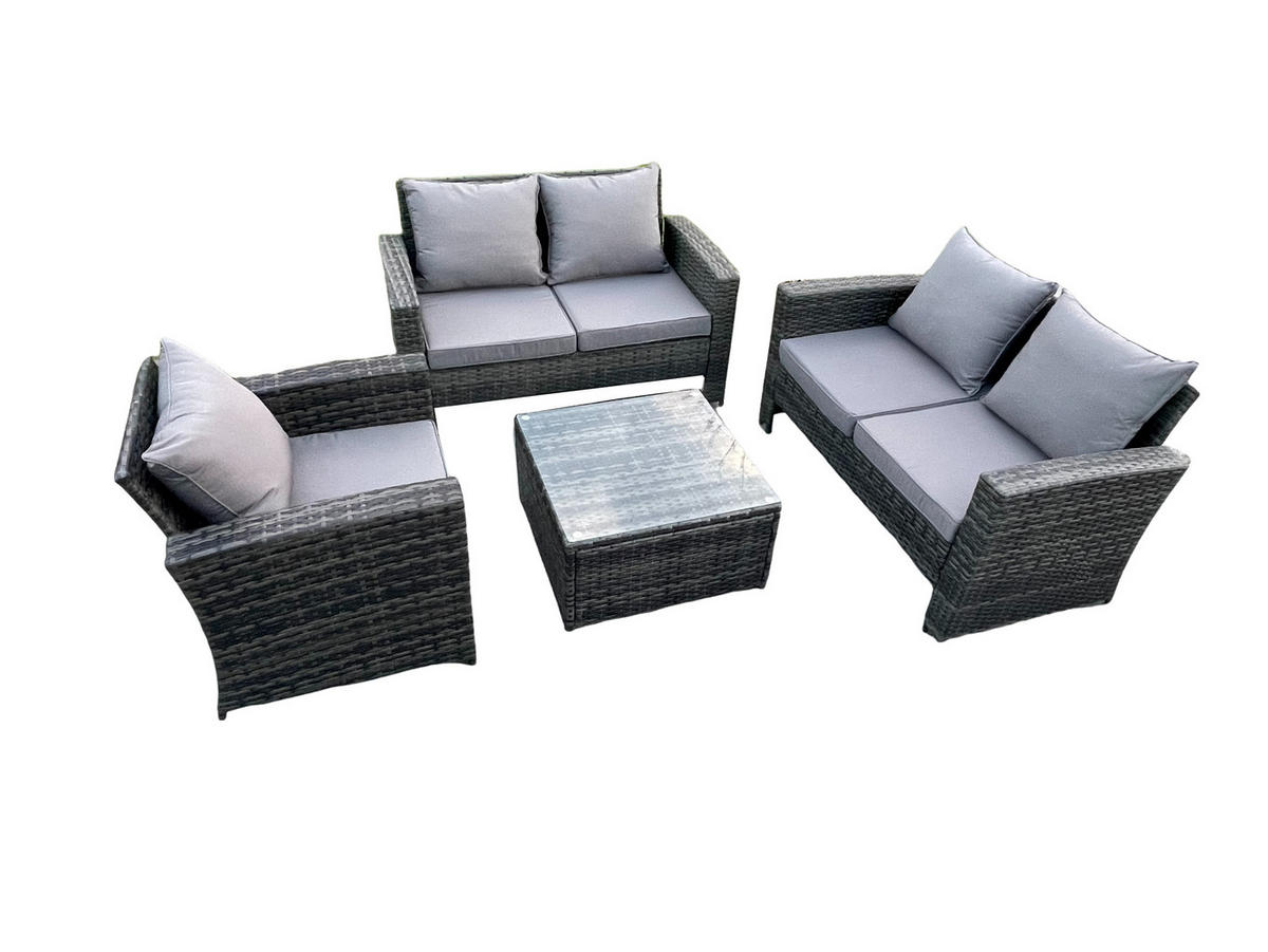 • Materialien: Polyrattan,Stoff,verzinkter Stahl,Schaum,Glas