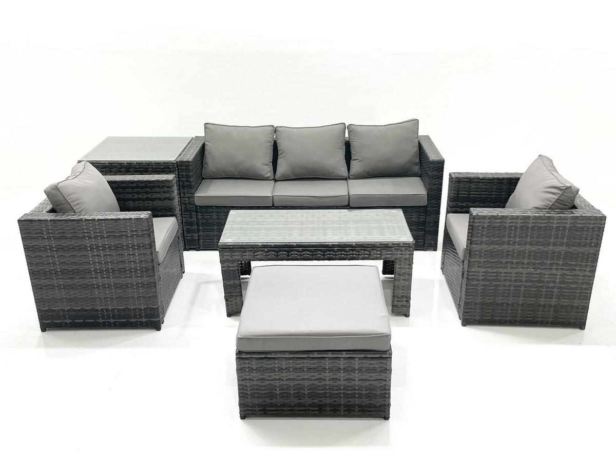 Fimous GARTENMÖBEL-SET COUCHTISCH SESSEL SOFA mit HOCKER Polyrattan Dunkelgrau Gemischt 6-Sitzer