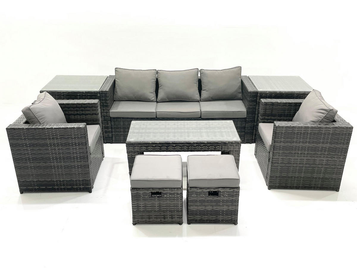 Fimous GARTENMÖBEL-SET COUCHTISCH SESSEL SOFA mit HOCKER Polyrattan Dunkelgrau Gemischt 7-Sitzer