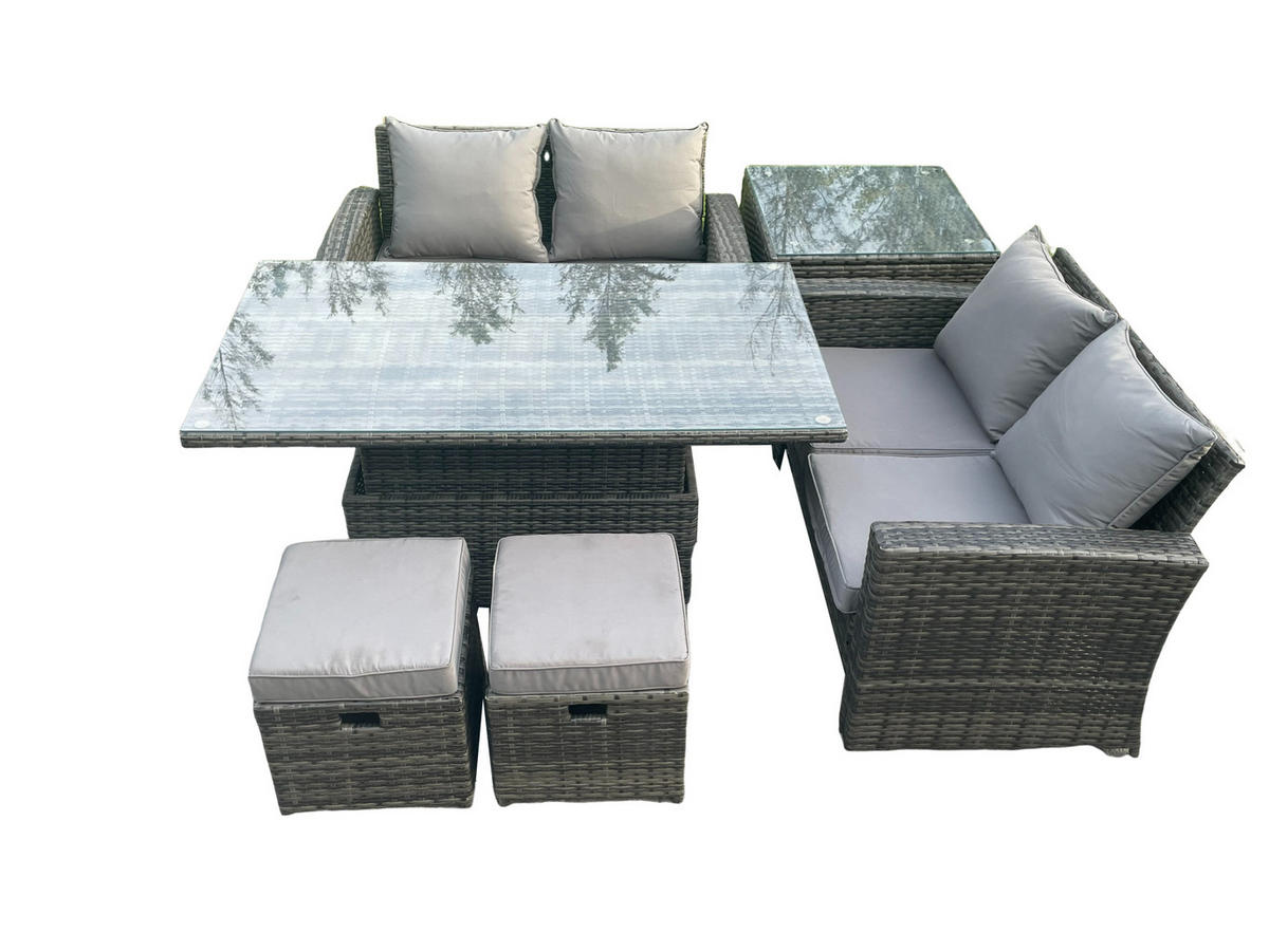 Fimous GARTENMÖBEL-SET HÖHENVERSTELLBARER ESSTISCH SOFA SET MIT BEISTELLTISCHE Polyrattan Dunkelgrau Gemischt 6-Sitzer