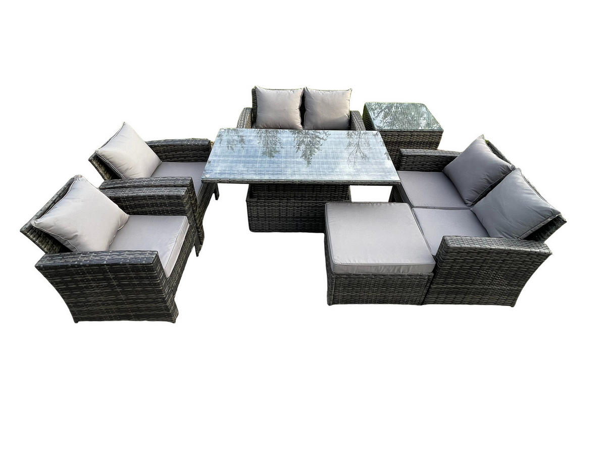Fimous GARTENMÖBEL-SET HÖHENVERSTELLBARER ESSTISCH SOFA SET MIT DOPPELSITZ-SOFA BEISTELLTISCH HOCKER Polyrattan Dunkelgrau Gemischt 7-Sitzer