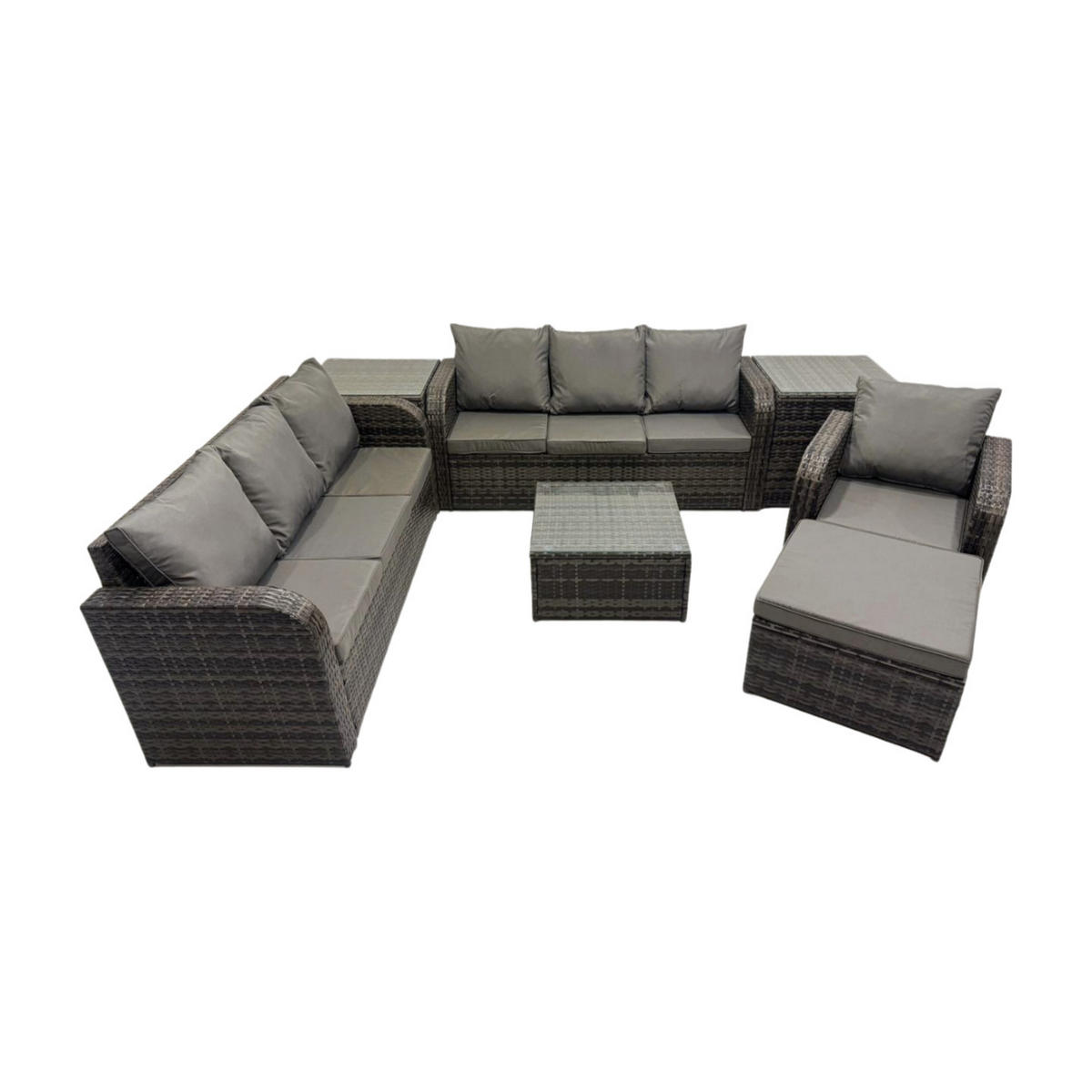 Fimous GARTENMÖBEL SET mit 3-SITZER SOFA Polyrattan Dunkelgrau 8-Sitzer