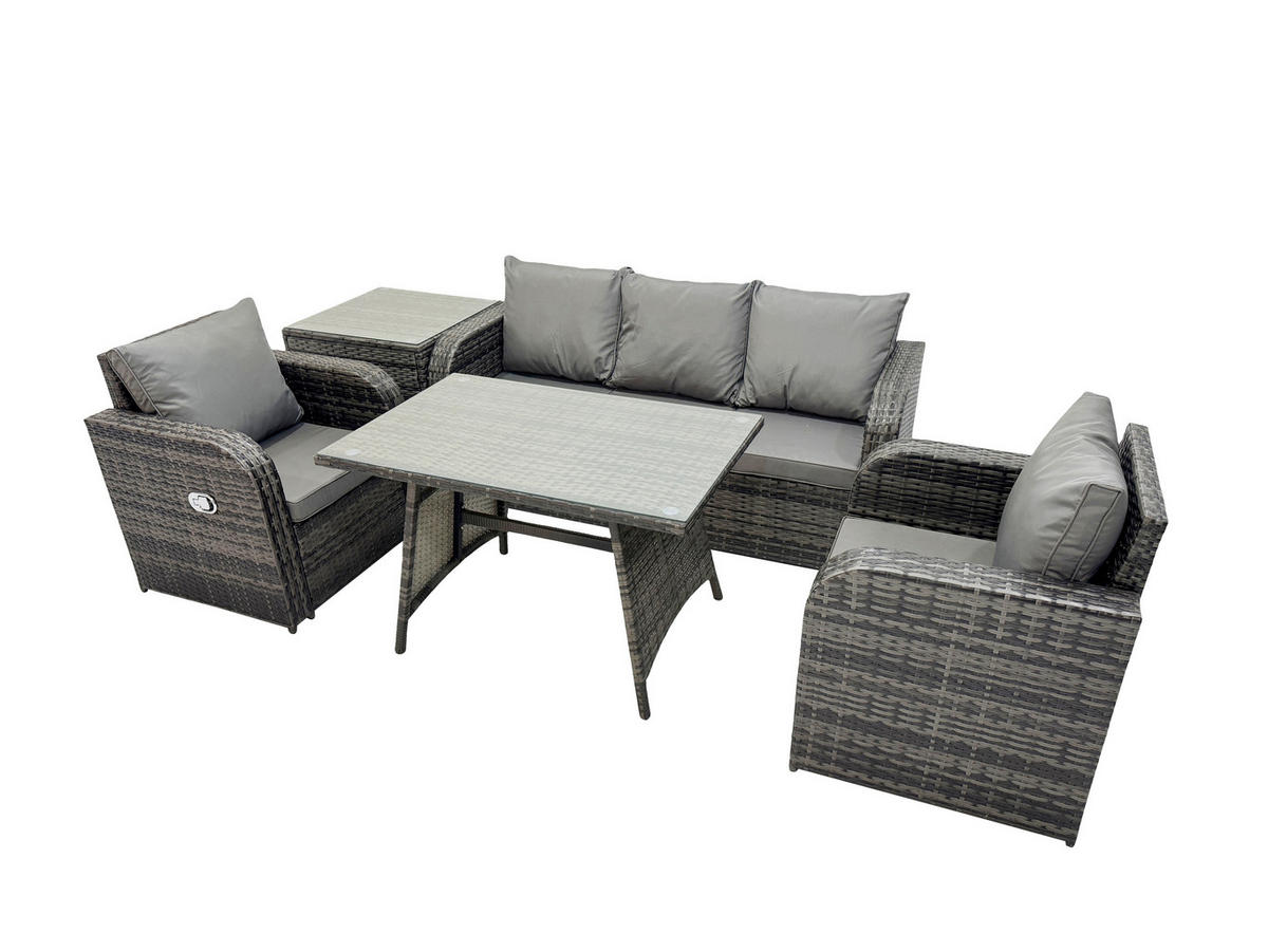 Fimous GARTENMÖBEL SET mit COUCHTISCH Polyrattan Dunkelgrau 5-Sitzer