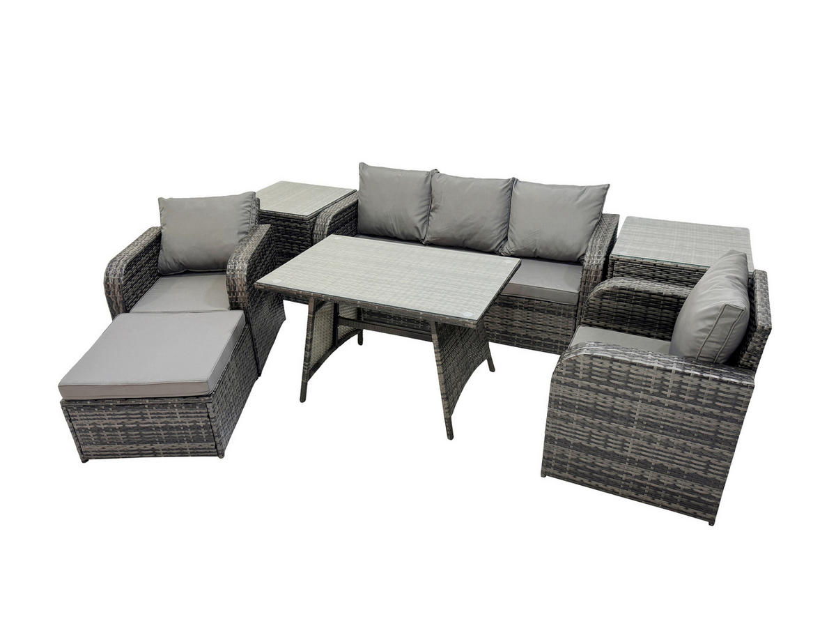 Fimous GARTENMÖBEL SET mit COUCHTISCH Polyrattan Dunkelgrau 6-Sitzer
