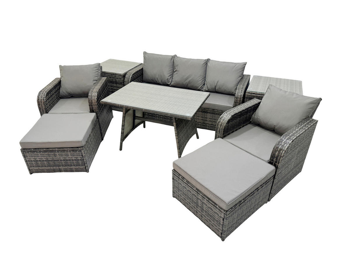 Fimous GARTENMÖBEL SET mit COUCHTISCH Polyrattan Dunkelgrau 7-Sitzer
