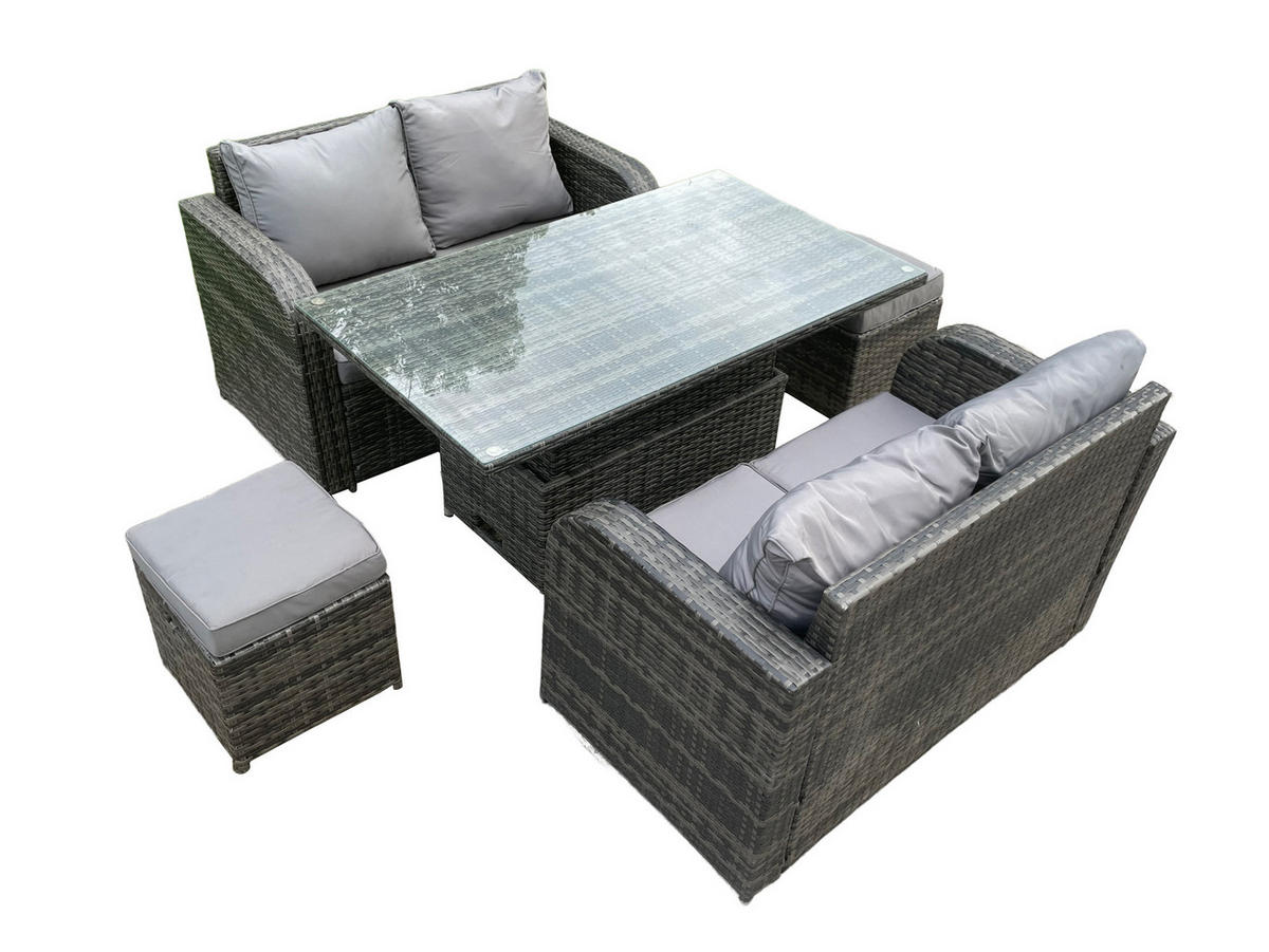 • Materialien: Polyrattan,Stoff,verzinkter Stahl,Schaum,Glas