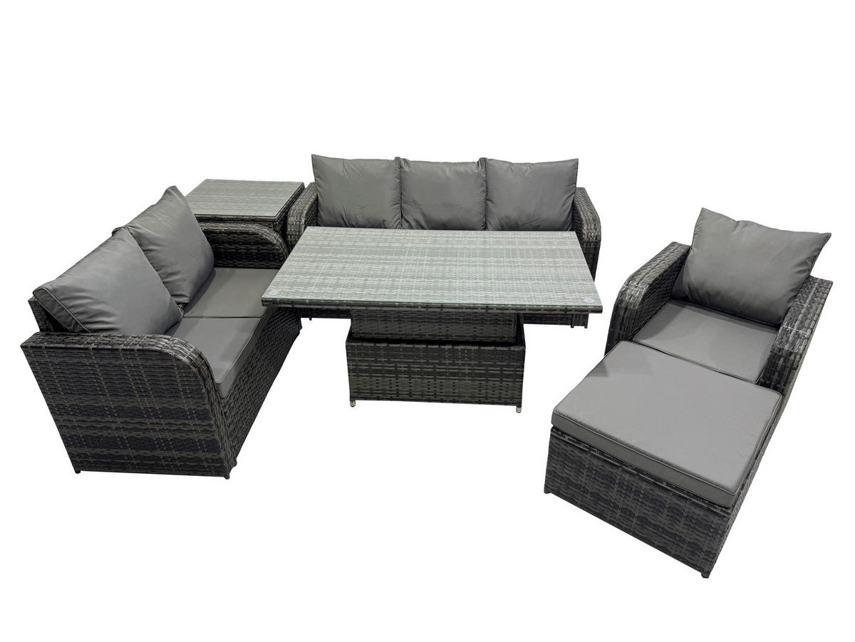 Fimous GARTENMÖBEL SET mit Höhenverstellbarer Esstisch 3-Sitzer Sofa, Stuhl 6-Sitzer Grau