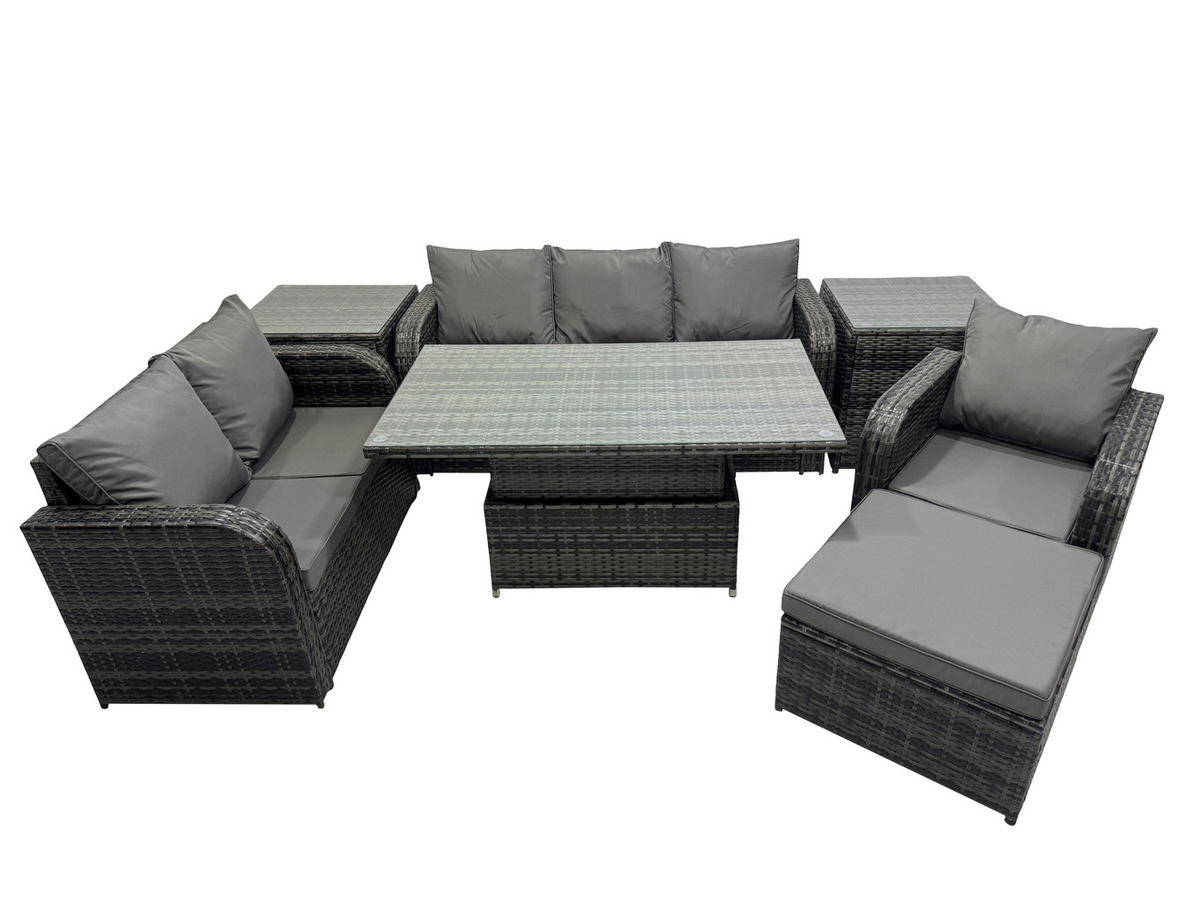 Fimous GARTENMÖBEL SET mit Höhenverstellbarer Esstisch 7-Sitzer Grau