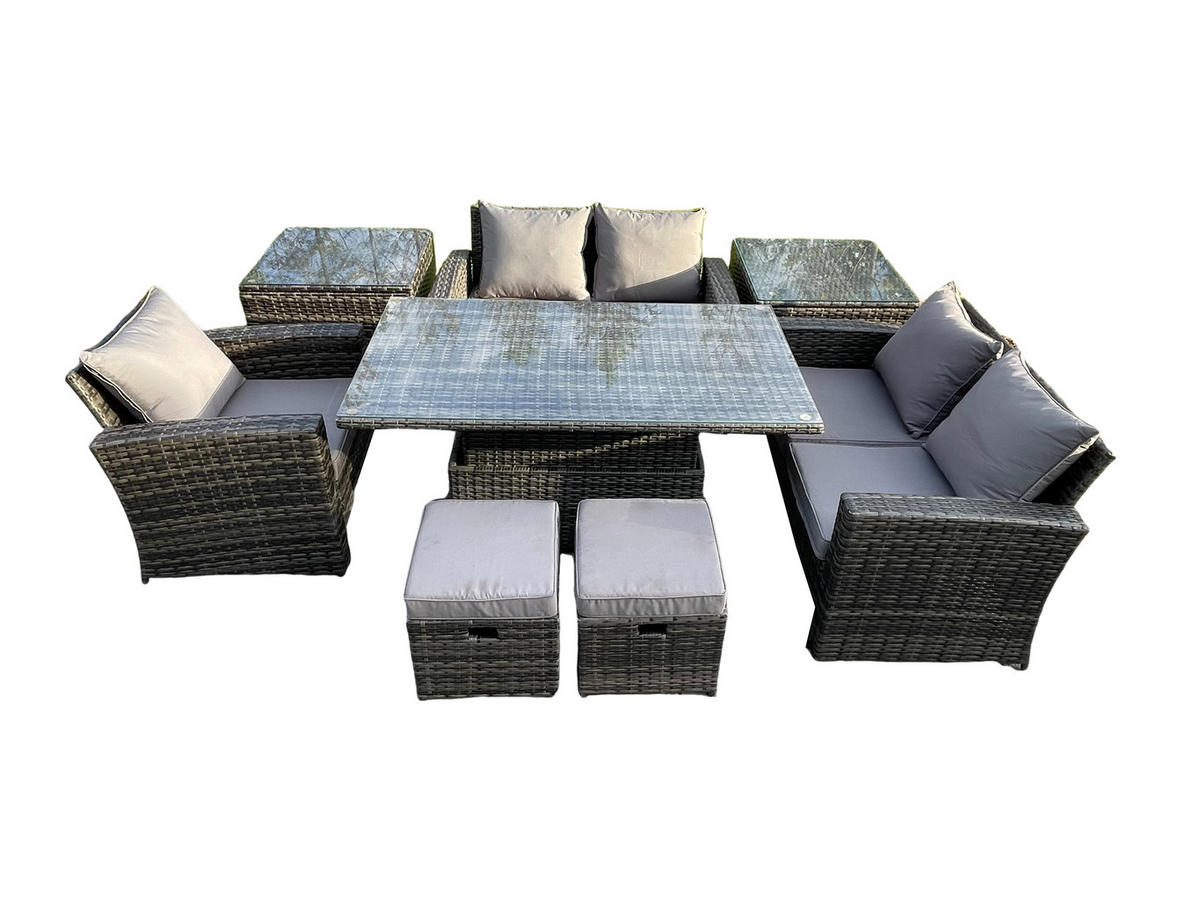 Fimous GARTENMÖBEL SET mit höhenverstellbarer Tisch Polyrattan Dunkelgrau 7-Sitzer