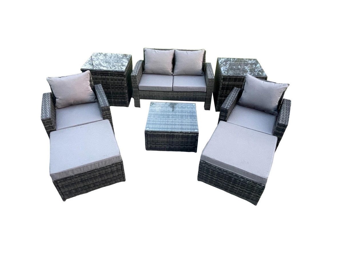 Fimous GARTENMÖBEL-SET mit Kissen Polyrattan Dunkelgrau 6-Sitzer