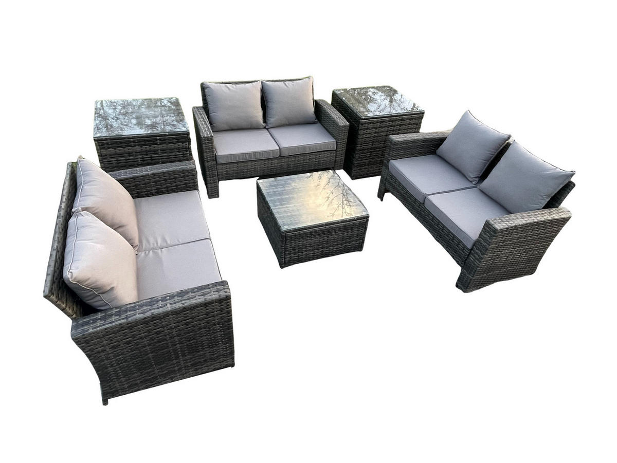 Fimous GARTENMÖBEL-SET mit Kissen Polyrattan Dunkelgrau 6-Sitzer