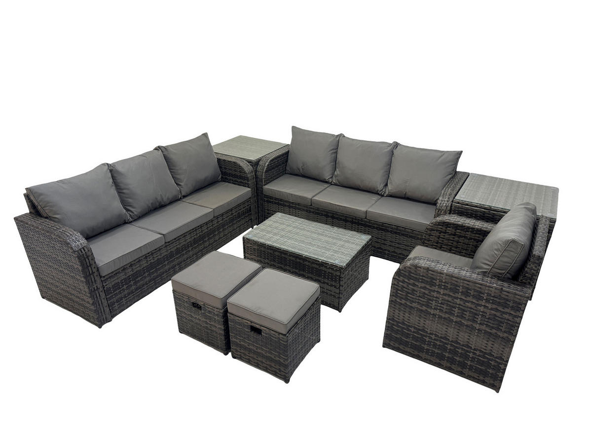 Fimous GARTENMÖBEL-SET mit Kissen Polyrattan Dunkelgrau 9-Sitzer