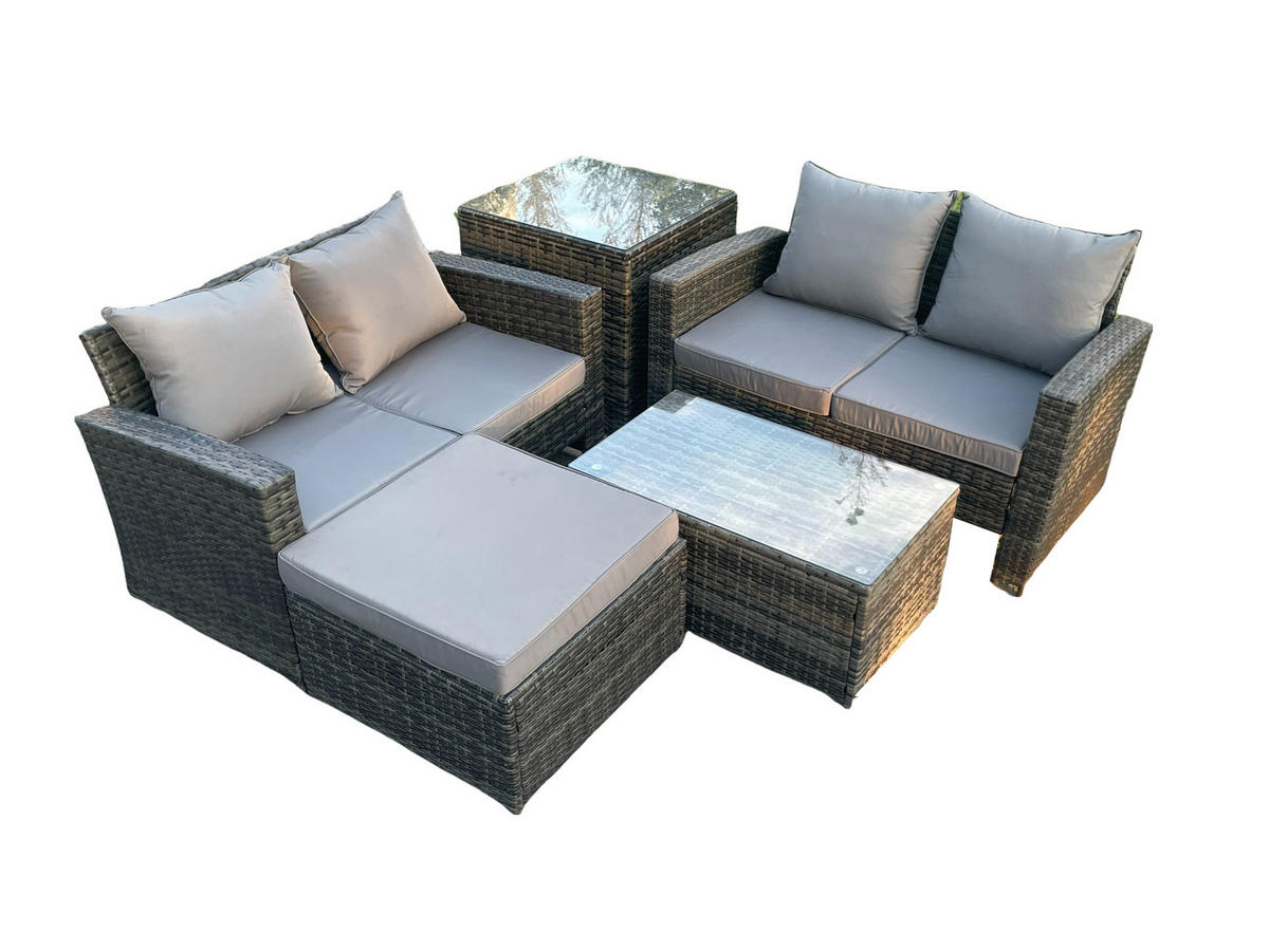 Fimous GARTENMÖBEL-SET MIT RECHTECKIGEM COUCHTISCH DOPPELSITZ-SOFA HOCKER BEISTELLTISCH Polyrattan Dunkelgrau Gemischt 5-Sitzer