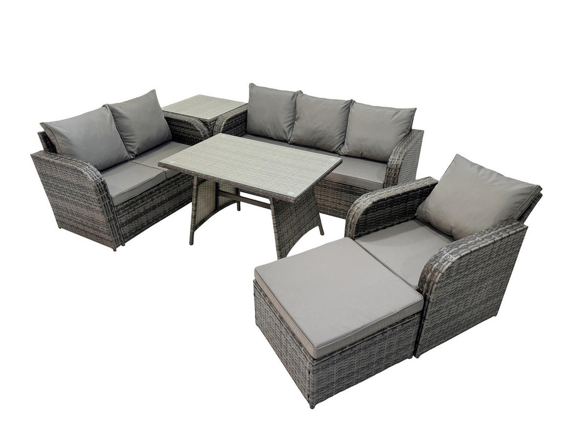 Fimous GARTENMÖBEL SET Polyrattan Dunkelgrau 7-Sitzer