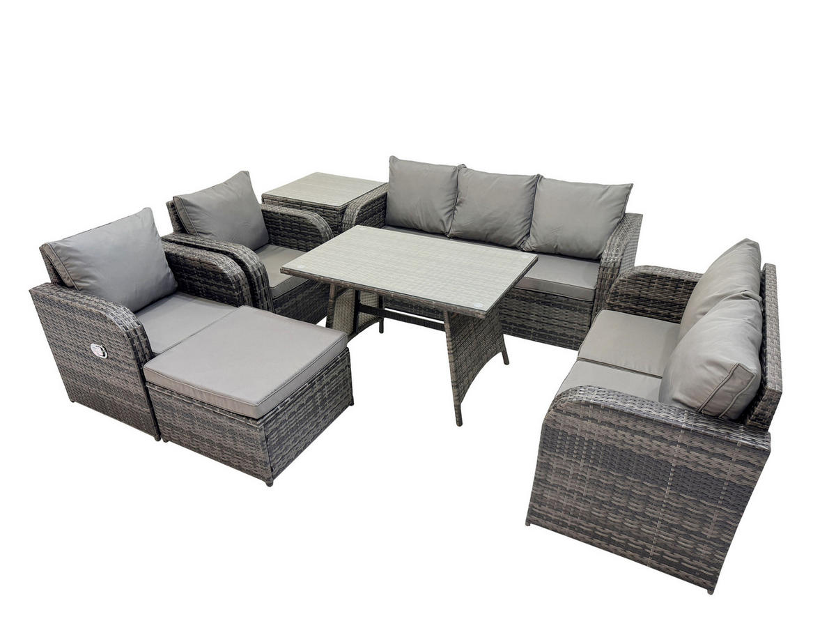 Fimous GARTENMÖBEL SET Polyrattan Dunkelgrau 8-Sitzer