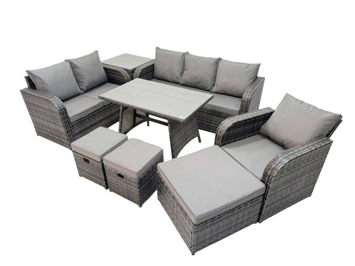 Fimous GARTENMÖBEL SET Polyrattan Dunkelgrau 9-Sitzer