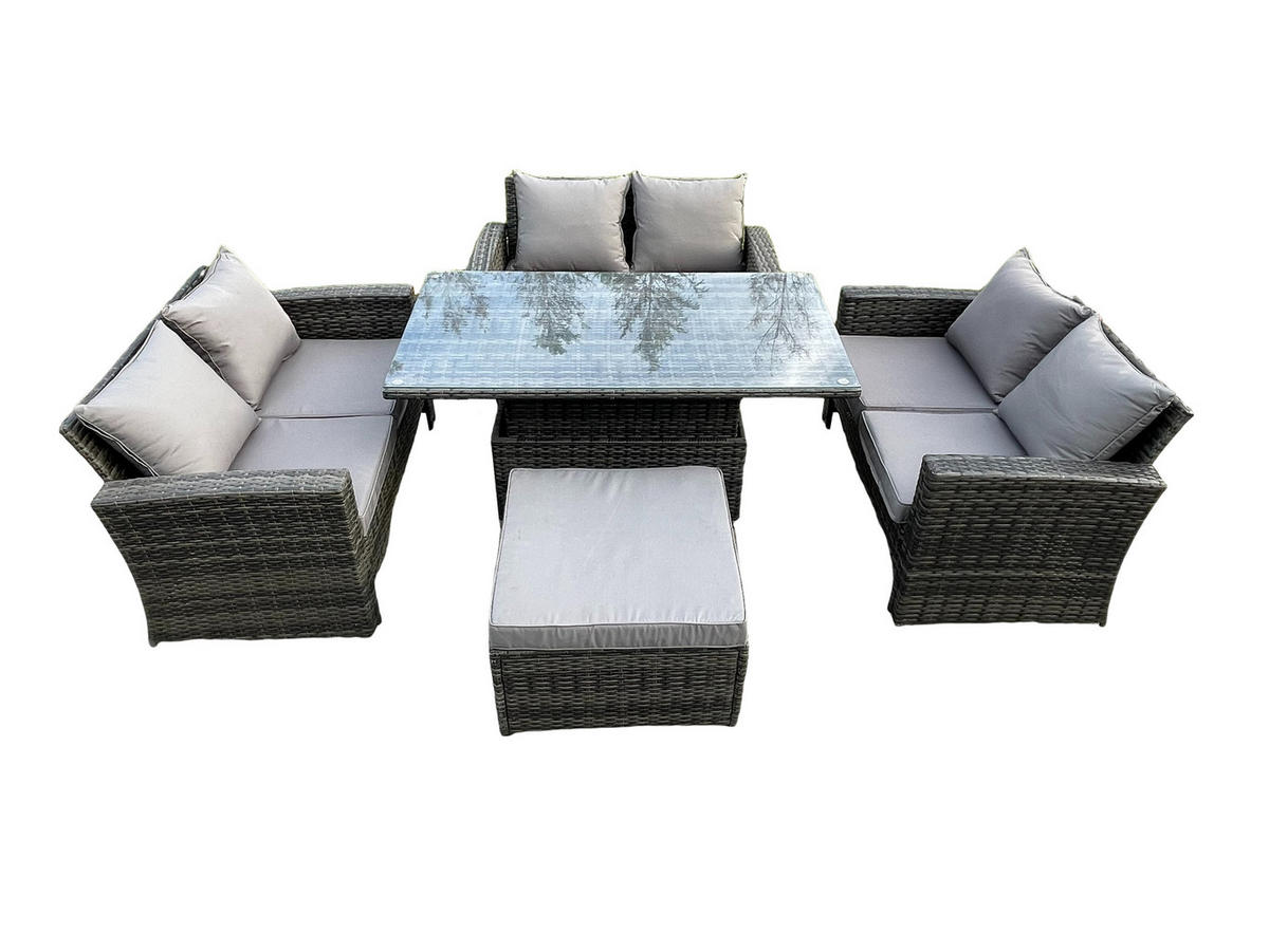Fimous GARTENMÖBEL SITZGRUPPE MIT HÖHENVERSTELLBAREN ESSTISCH DOPPELSITZ-SOFA HOCKER Polyrattan Dunkelgrau Gemischt 7-Sitzer