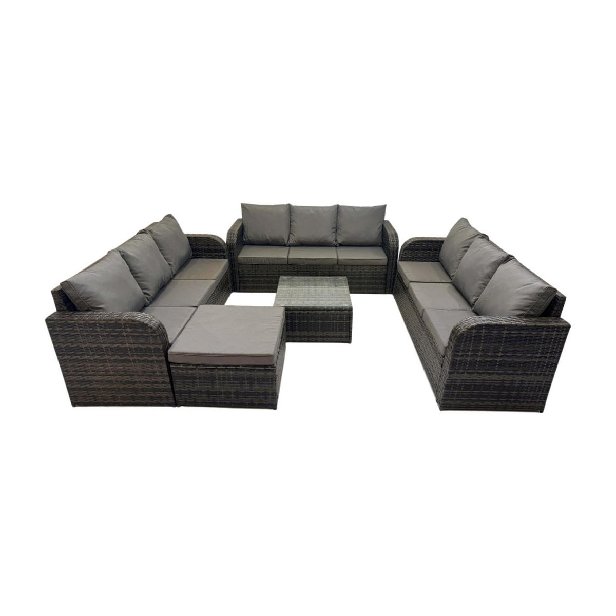 Fimous GARTENMÖBELGARNITUR mit KISSEN Polyrattan Dunkelgrau 10-Sitzer