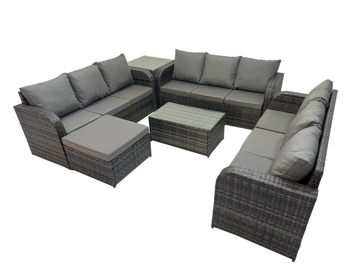 Fimous GARTENMÖBELGARNITUR mit KISSEN Polyrattan Dunkelgrau 10-Sitzer