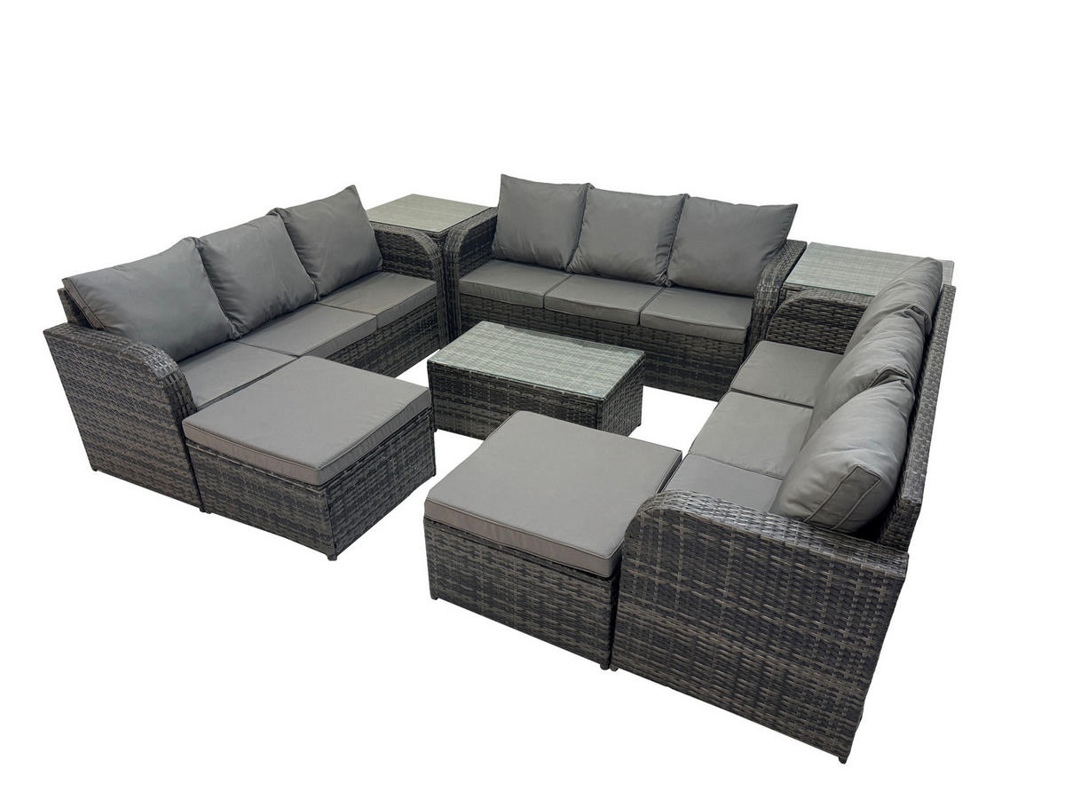Fimous GARTENMÖBELGARNITUR mit KISSEN Polyrattan Dunkelgrau 11-Sitzer