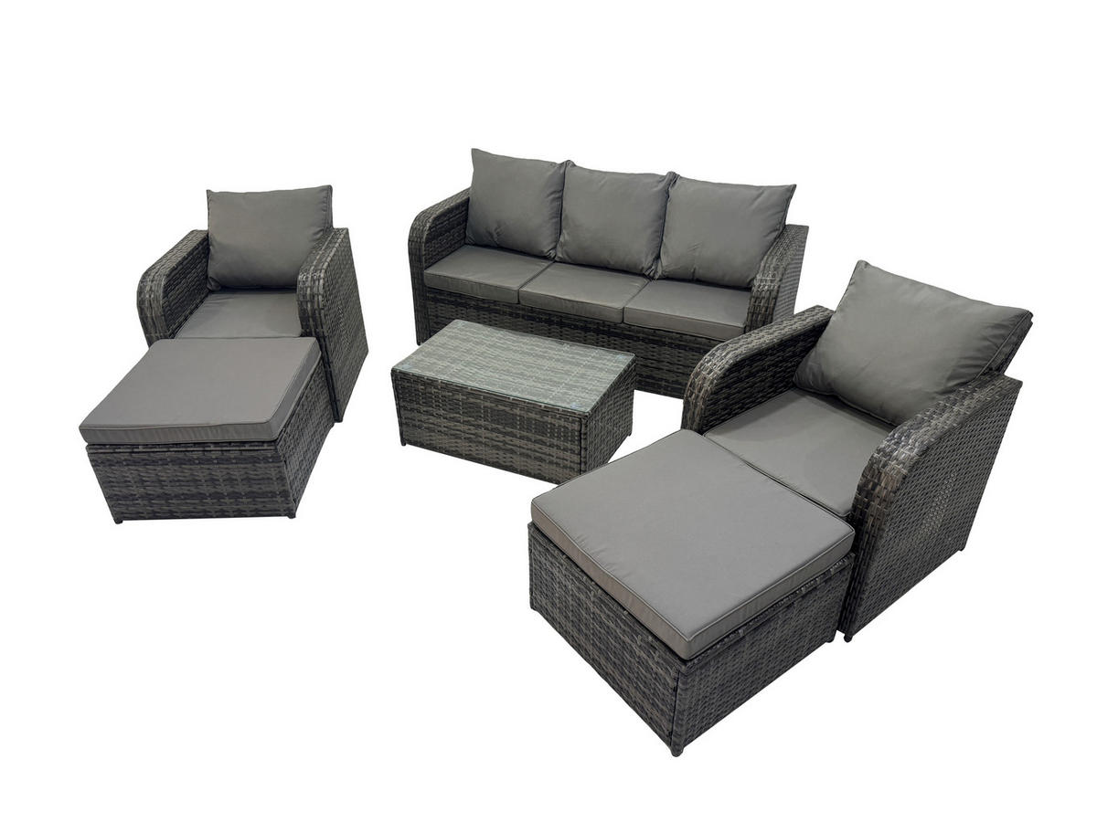 Fimous GARTENMÖBELGARNITUR mit KISSEN Polyrattan Dunkelgrau 7-Sitzer