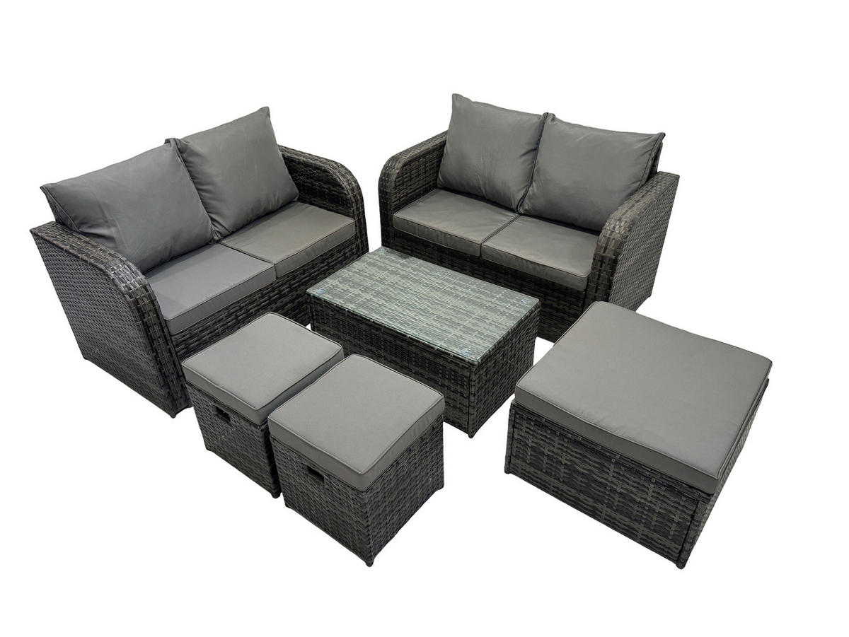 Fimous GARTENMÖBELGARNITUR mit KISSEN Polyrattan Dunkelgrau 7-Sitzer