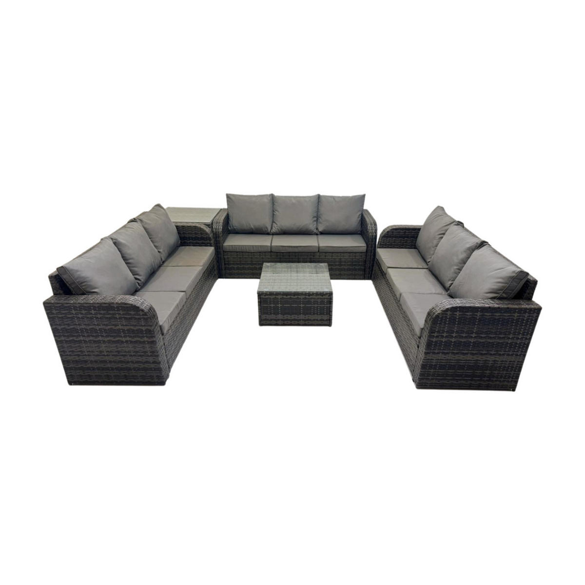 Fimous GARTENMÖBELGARNITUR mit KISSEN Polyrattan Dunkelgrau 9-Sitzer