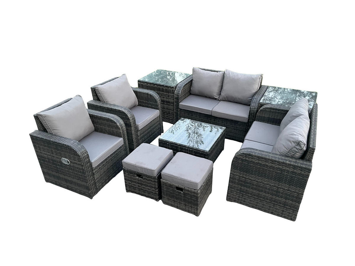 Fimous GARTENMÖBELGARNITUR Polyrattan Dunkelgrau 8-Sitzer