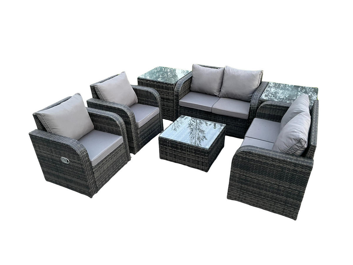 Fimous GARTENMÖBELGARNITUR Polyrattan Dunkelgrau 8-Sitzer