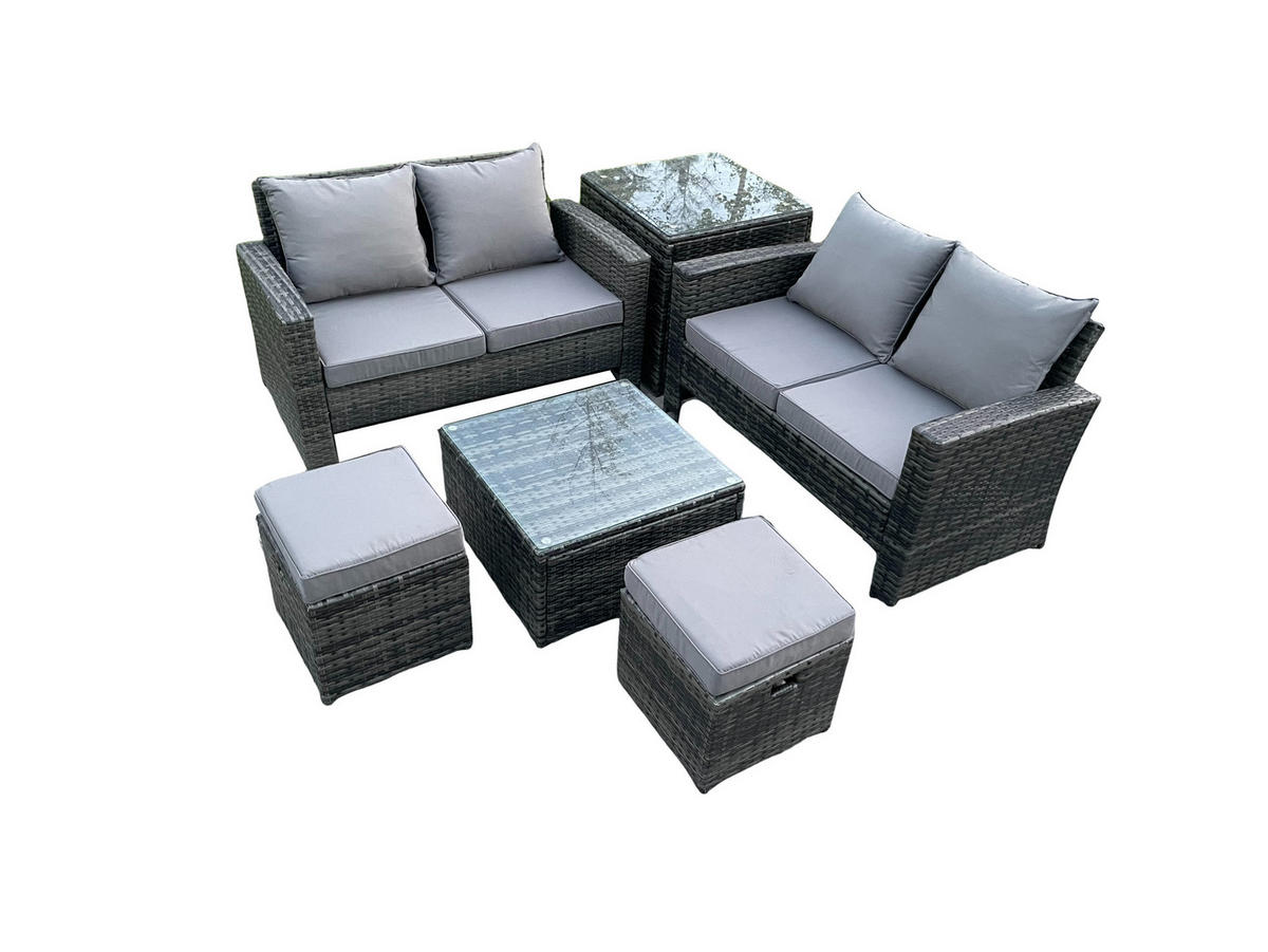 Fimous GARTENMÖBELSET mit 2 kleinen Hockern Polyrattan Dunkelgrau 7-Sitzer