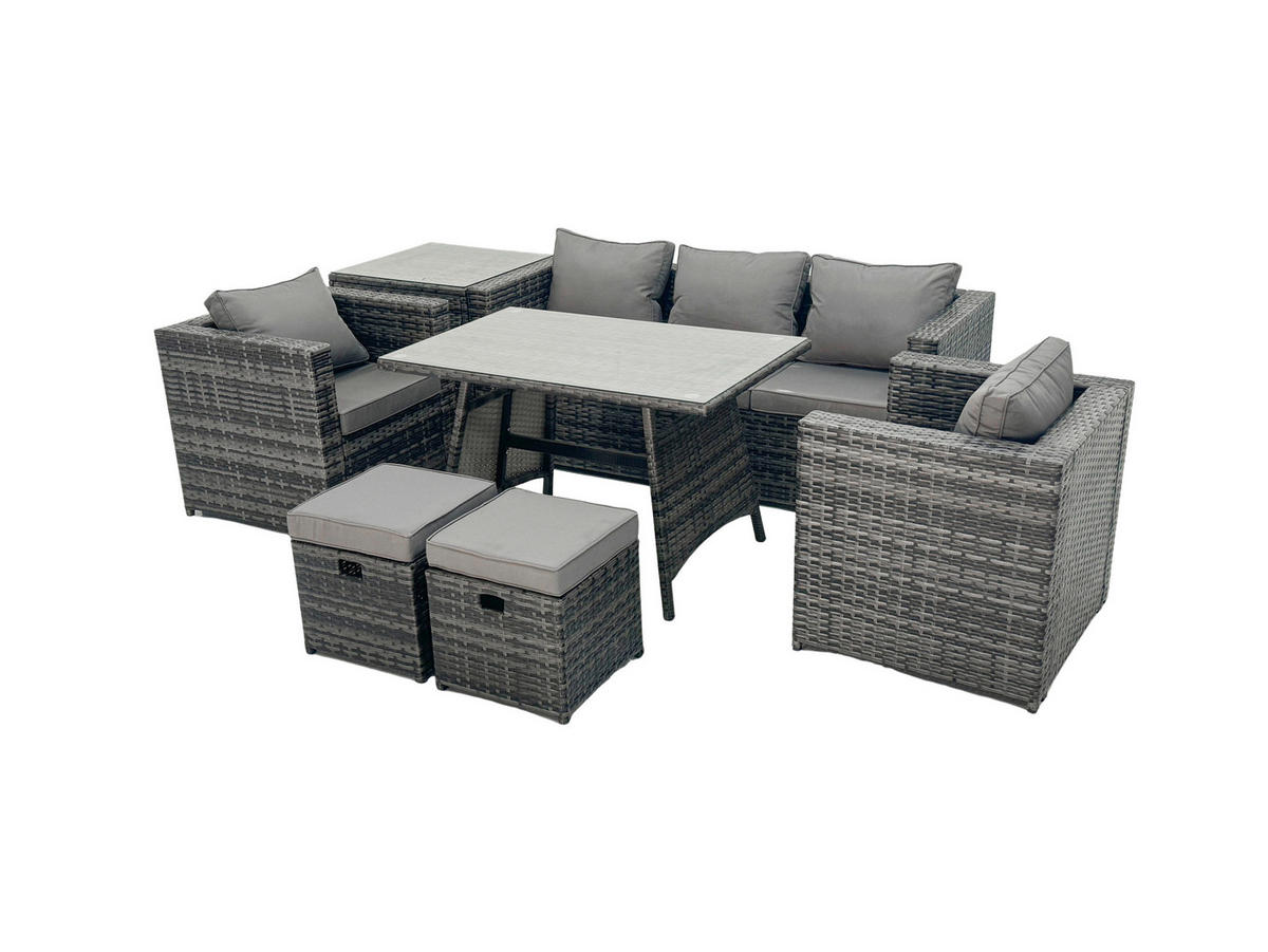 Fimous GARTENMÖBELSET mit Esstisch,Beistelltisch 7-Sitzer Grau