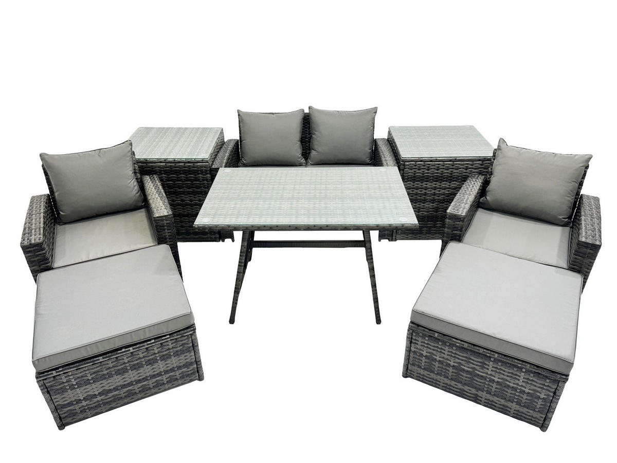 Fimous GARTENMÖBELSET mit ESSTISCH,HOCHLEHNER-SOFA Polyrattan Dunkelgrauer Mix 6-Sitzer