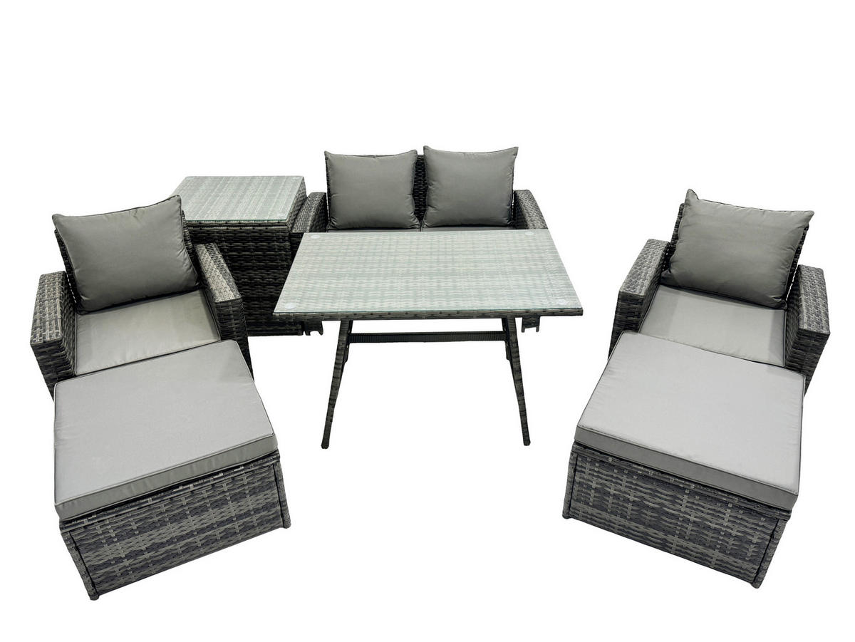 Fimous GARTENMÖBELSET mit ESSTISCH,HOCHLEHNER-SOFA Polyrattan Dunkelgrauer Mix 6-Sitzer