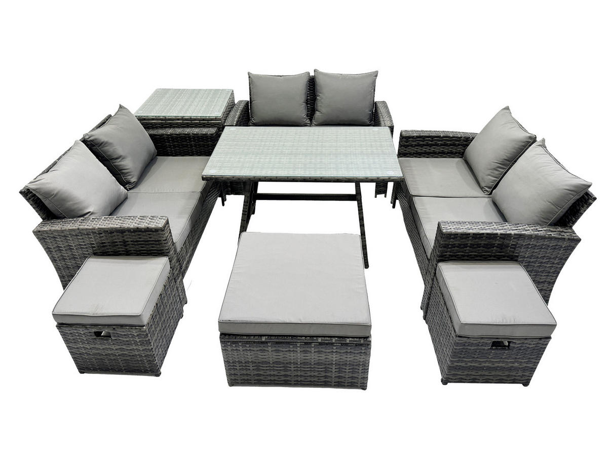 Fimous GARTENMÖBELSET mit ESSTISCH,HOCHLEHNER-SOFA Polyrattan Dunkelgrauer Mix 9-Sitzer
