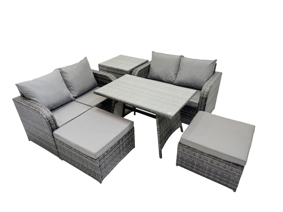 Fimous GARTENMÖBELSET mit ESSTISCH,SOFA Polyrattan 6-Sitzer