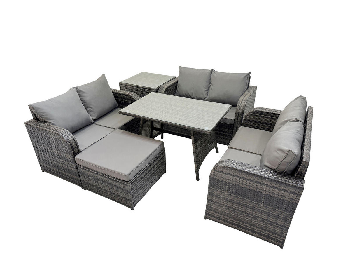 Fimous GARTENMÖBELSET mit ESSTISCH,SOFA Polyrattan 7-Sitzer