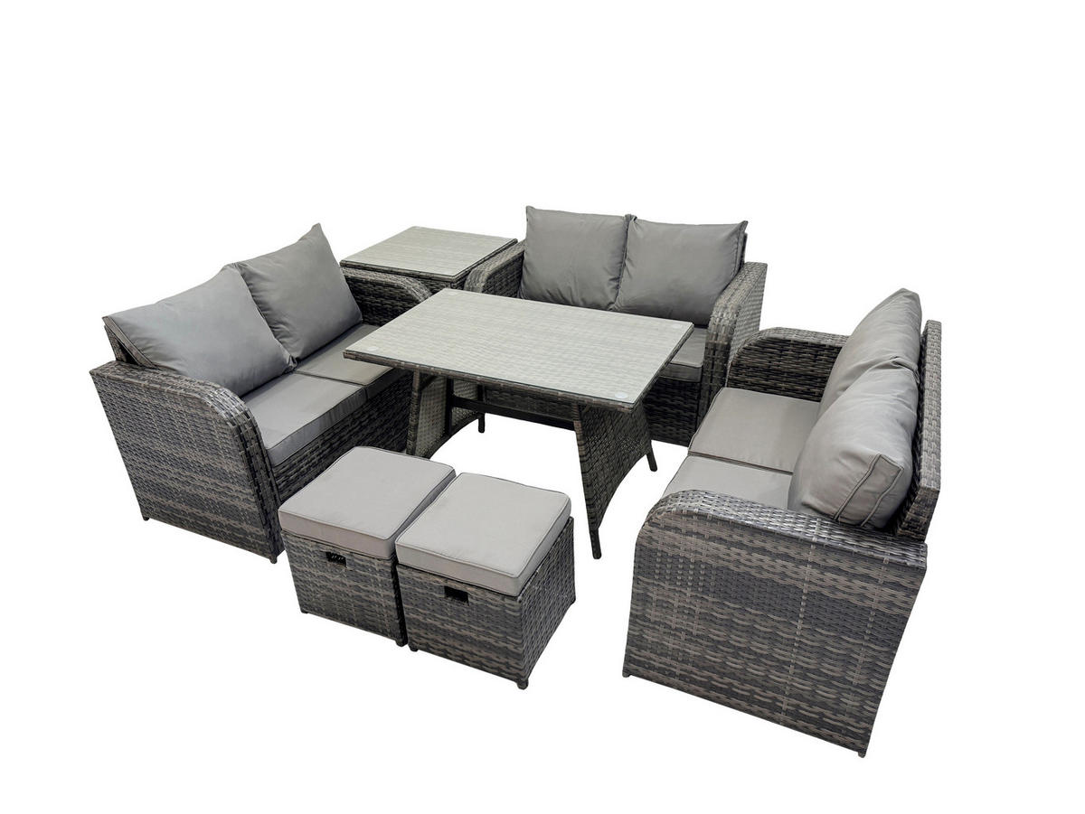 Fimous GARTENMÖBELSET mit ESSTISCH,SOFA Polyrattan 8-Sitzer