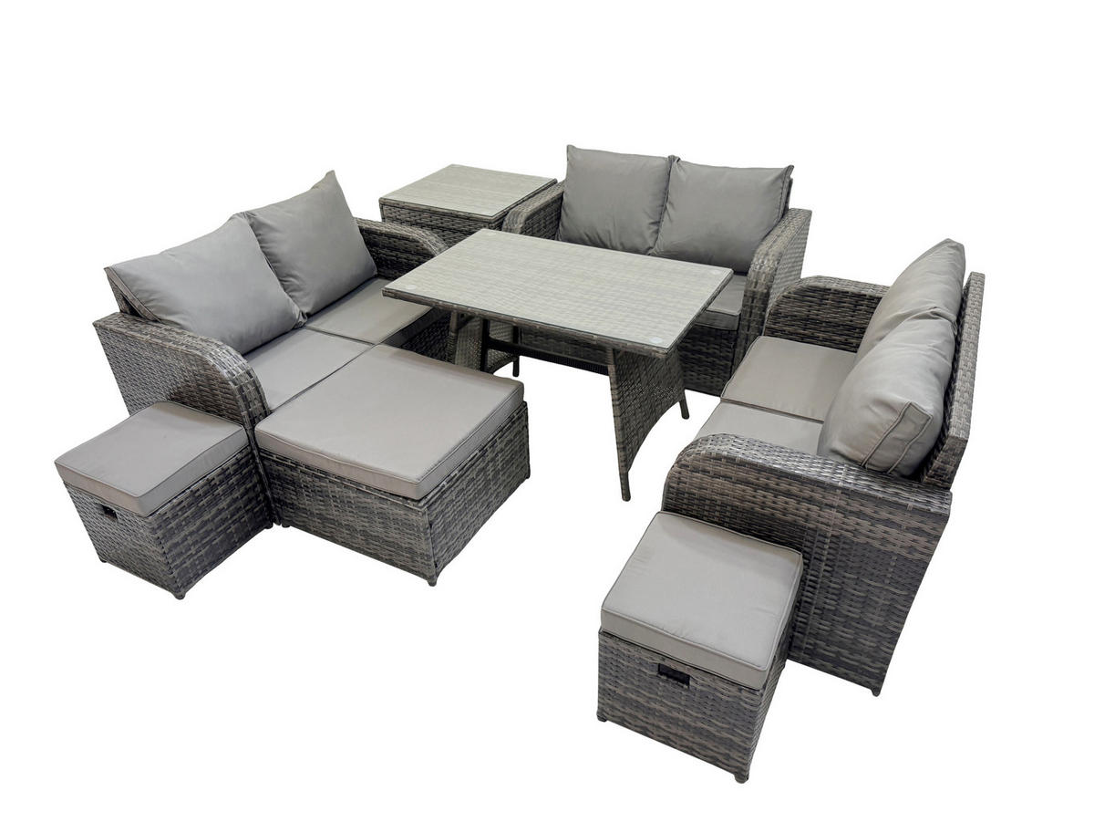 Fimous GARTENMÖBELSET mit ESSTISCH,SOFA Polyrattan 9-Sitzer