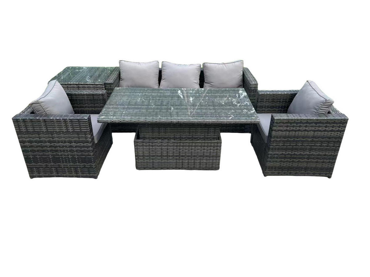 • Materialien: Polyrattan,Stoff,verzinkter Stahl,Schaum,Glas