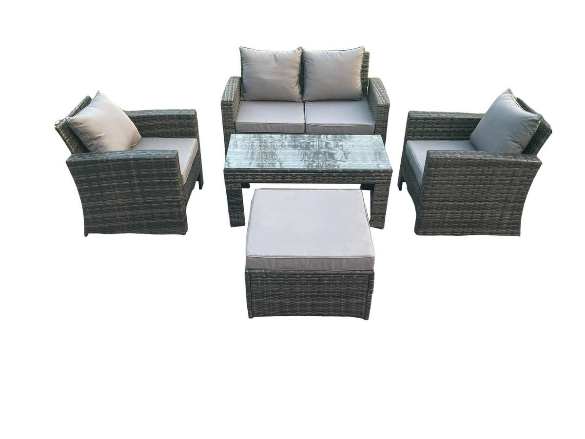 Fimous GARTENSOFA mit hoher Rückenlehne Polyrattan Dunkelgrau 5-Sitzer