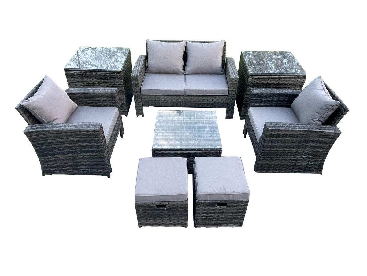 Fimous GARTENSOFA mit hoher Rückenlehne Polyrattan Dunkelgrau 6-Sitzer
