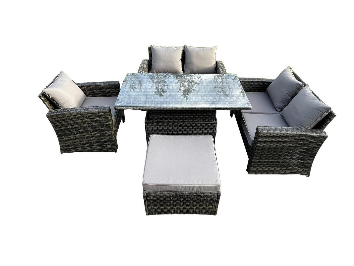 Fimous GARTENSOFA mit hoher Rückenlehne Polyrattan Dunkelgrau 6-Sitzer