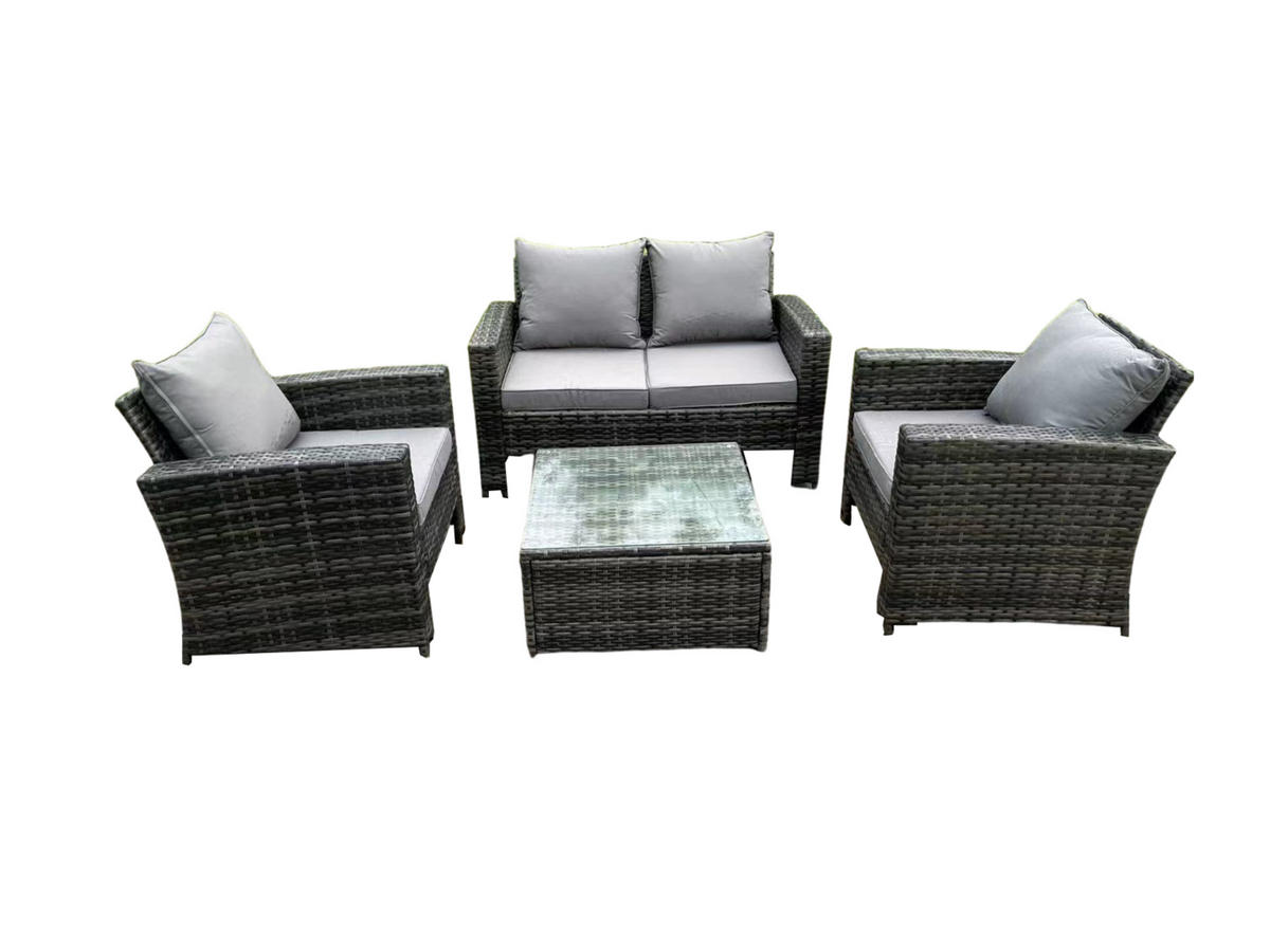 Fimous GARTENSOFA SET mit Couchtisch Polyrattan Dunkelgrau 4-Sitzer