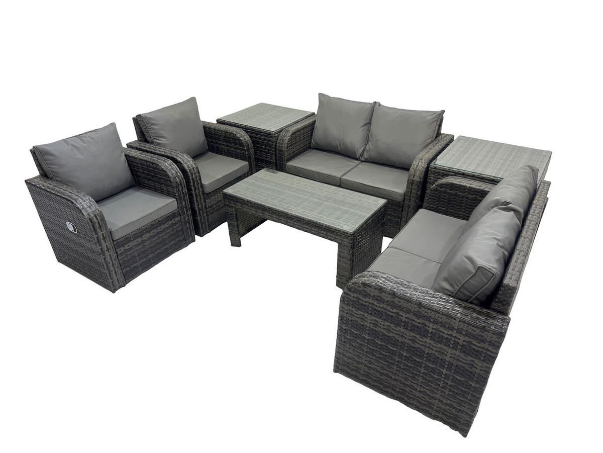 Fimous GARTENSOFA SET mit LIEGESTUHL Polyrattan 6-Sitzer Dunkelgrau